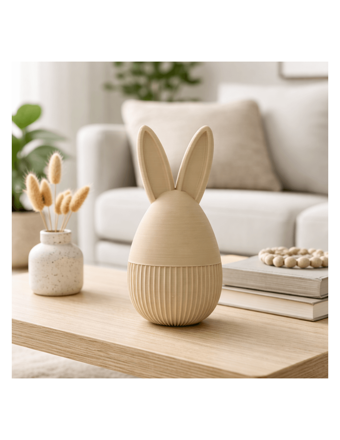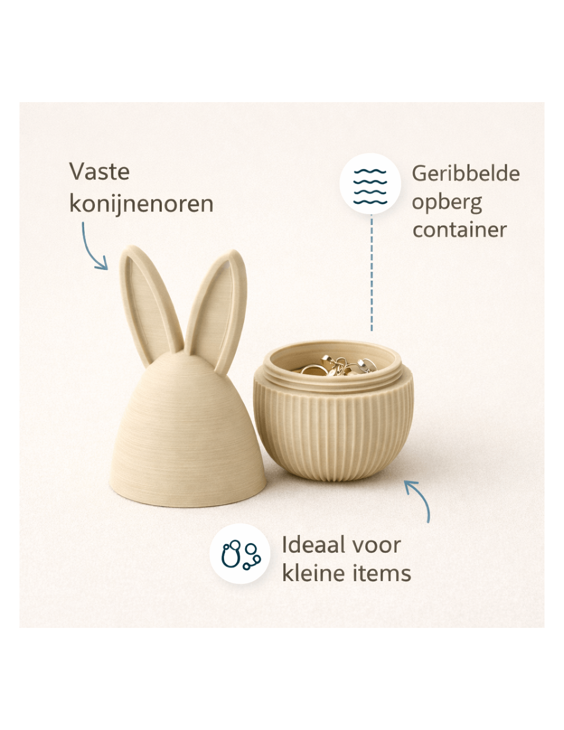 Stijlvolle konijnen opbergdoos met geribbelde container en vast oor-deksel. Perfect voor het opbergen van kleine items zoals sieraden of sleutels. Decoratief èn functioneel.